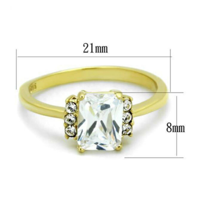 ステンレスリング/ゴールドプレートスクエアデザインキュービックジルコニアリング 7ストーン/サージカルステンレス製リング/【メール便送料無料】