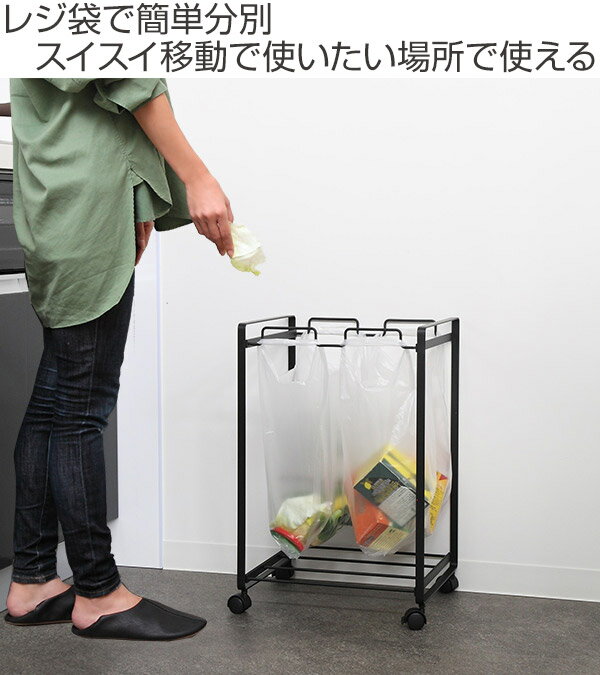 フタがないのでカウンター下や棚下に置いてもゴミをポイポイ捨てられて便利!キャスター付きでサッと出せるので、ゴミ箱上での分別もスイスイできます。