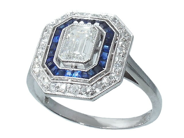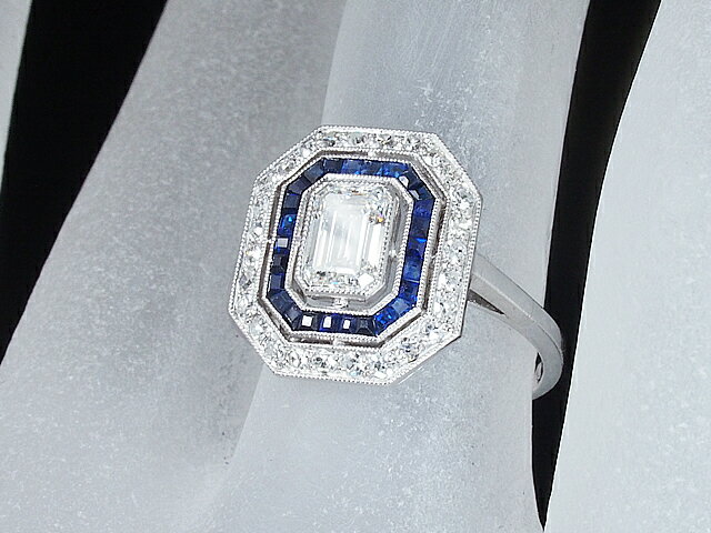 ミキモト MIKIMOTO 超希少 アンティークリング エメラルドカットダイヤモンドリング Pt950プラチナ カリブレカットサファイアリング ダイヤリング 10.5号【中古】【ロイヤルブルー】【送料無料】