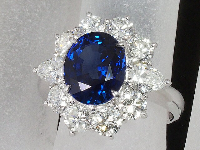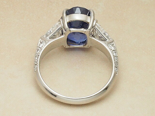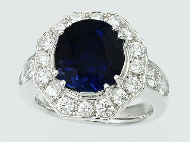 非加熱サファイヤ 指輪 プラチナ 3.825ct ダイヤ 0.898ct 中央宝石分析結果報告書付き【サファイヤ リング】