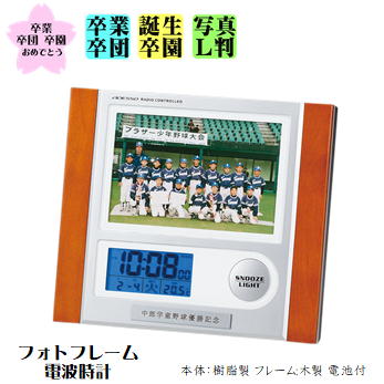 フォトフレーム電波時計【限定5ヶ】トロフィー【ブロンズ】(樹脂製・電池付き)卒業記念品・卒団記念品 部活 卒業・引退記念品 置時計 プレゼント ギフト サッカー/野球/ゴルフ/バレー/バスケ★★レーザー名入れ代無料★
