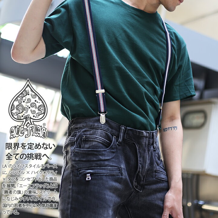 国内の有名アーティスト、ファッショニスタが着用し話題のLA発ストリート系ブランド「ACEFLAG/エースフラッグ」からオシャレなサスペンダーが入荷。