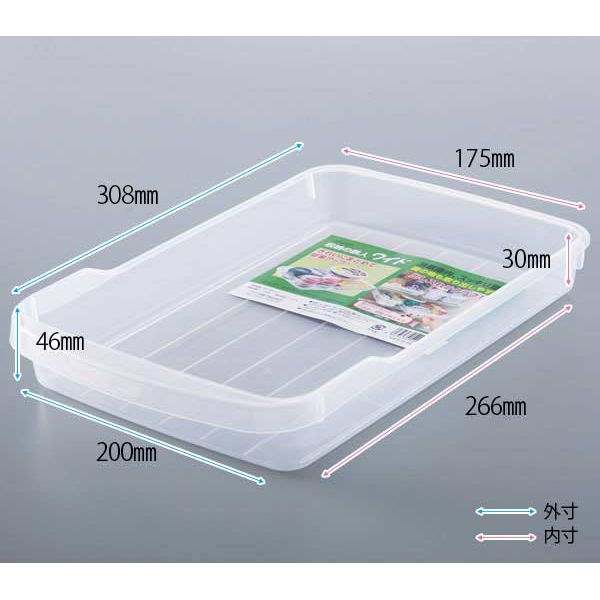 ●外寸サイズ(約)・200×308×高さ46mm●色・クリア●耐熱100度/耐冷−20度●原料樹脂・ポリプロピレン●用途・冷蔵庫収納 収納 整理 引出し 引きだし トレー●キーワード・ひきだし とれー トレイ とれい れいぞうこ しゅうのう せいり 100均 100円均一●品名・収納の鉄人 ワイド C●品番・D5295●JAN・4973430529501●メーカー名・サナダ精工(株)●カテゴリ・K111101●管理単位・10個/120個●入数・1個