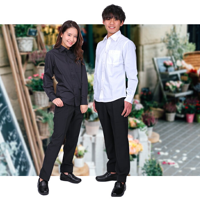 【あす楽】【送料無料】長袖シャツ レギュラーカラー メンズ レディース 男女兼用 男性用 女性用 白 ホワイト ブラック 黒 ユニフォーム 制服 領収書OK 父の日