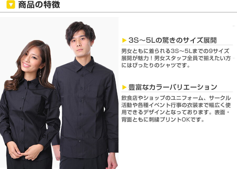 男女兼用 ブロードシャツ 無地シャツ 長袖シャツ 白 黒 カッターシャツ 男性用 女性用 メンズ レディース【業務用 長袖 ユニフォーム カフェ ホール スタッフ】 楽天カード分割 02P03Dec16