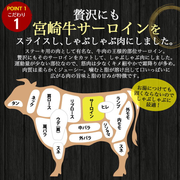 【ご利用シーン】 お祝い 御祝い 御祝 内祝い 内祝 結婚祝 誕生日 出産 出産祝い 記念日 お返し お礼 お正月 元旦 御年賀 お年賀 卒業祝い 卒業 入学祝い 入学 お中元 お歳暮 父の日 母の日 敬老の日 長寿祝い 還暦 還暦祝い 古希 喜寿 傘寿 傘寿 卒寿 卒寿 紀寿 百寿 退職 就職 退職祝 就職祝 手土産 お土産 発表会 お供え 金婚式 銀婚式 景品 引出物 引き出物 プレゼント ギフト 贈答品 贈答用 贈答 贈り物 【大切な方への贈り物に】 お父さん お母さん おじいちゃん おばあちゃん 父 母 祖父 祖母 兄弟 姉妹 子供 親戚 先生 恩師 同僚 先輩 後輩 職場 恋人 彼女 彼氏 女性 男性贅沢にも宮崎牛サーロインをしゃぶしゃぶ肉に! A4ランク 宮崎牛しゃぶしゃぶ用サーロイン 500g しゃぶしゃぶ特化したお肉です。